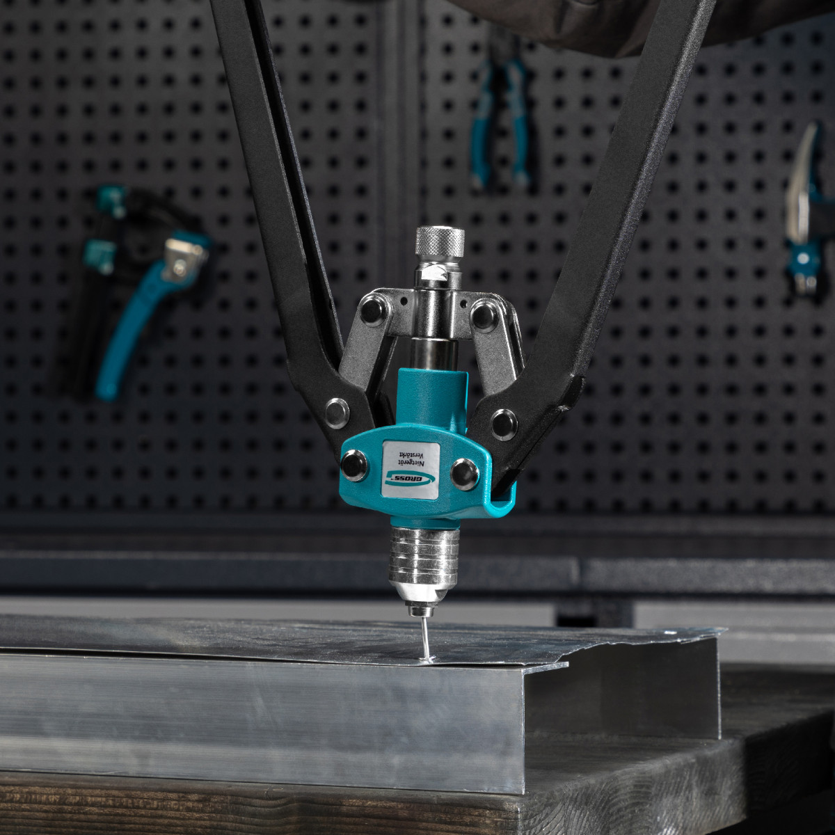 - Высокий ресурс — зажимной механизм из высокопрочной хромомолибденовой стали SCM415 устойчив к нагрузкам и обеспечивает надежный захват стержня заклепки.