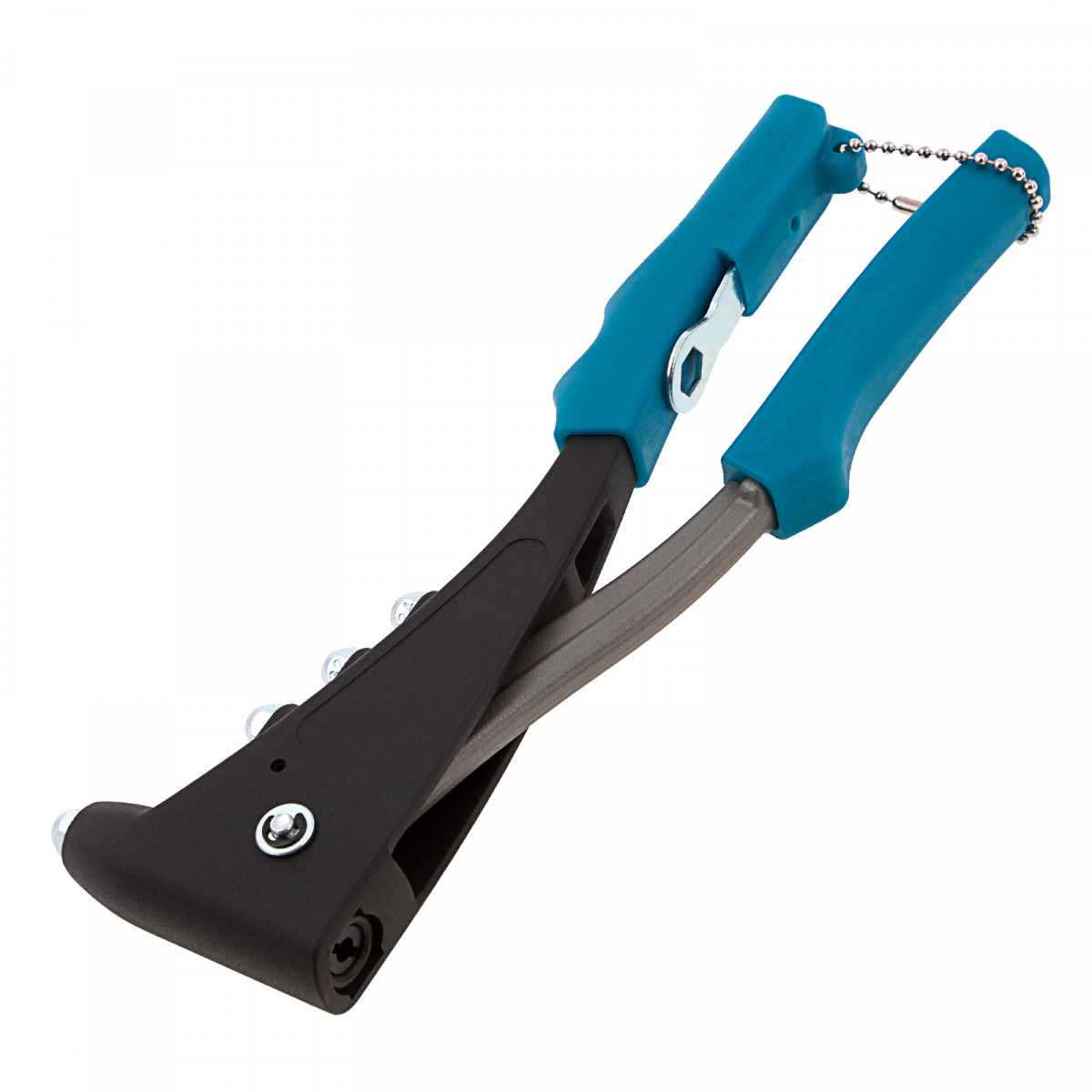 Литой усиленный заклепочник Gross 40403 для заклепок диаметром 2,4-4,8 мм применяется для надежного соединения плоских заготовок и деталей. Для этого используются стальные и алюминиевые заклепки или заклепки из нержавеющей стали. Для установки крепежа не требуется особых усилий благодаря кованому изогнутому рычагу. Инструмент используется в строительстве, при производстве мебели и техники, для соединения листового металла и т.д.