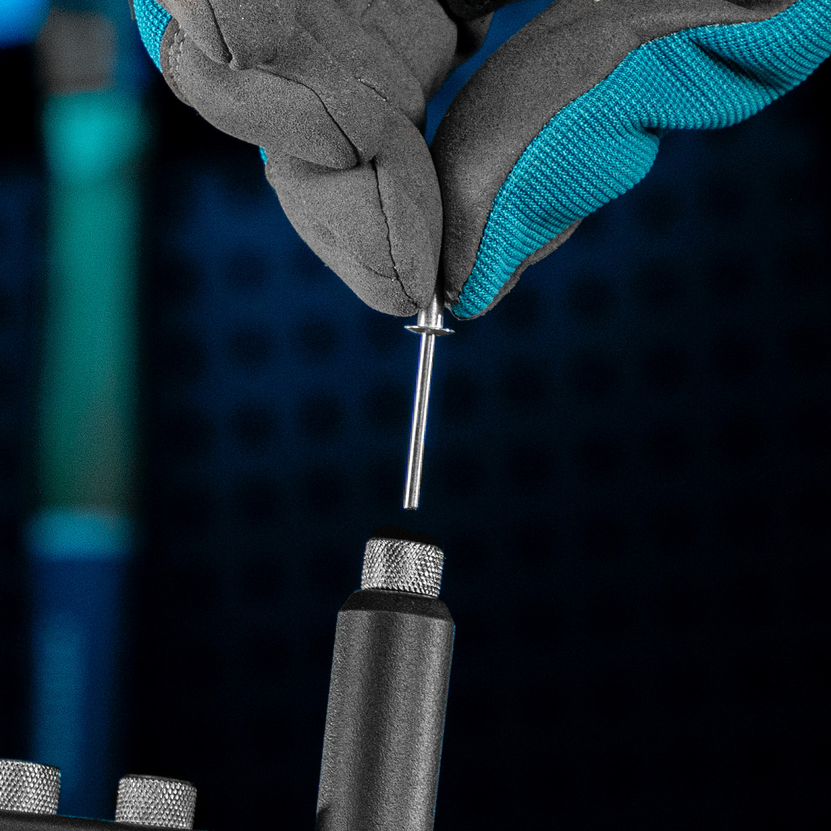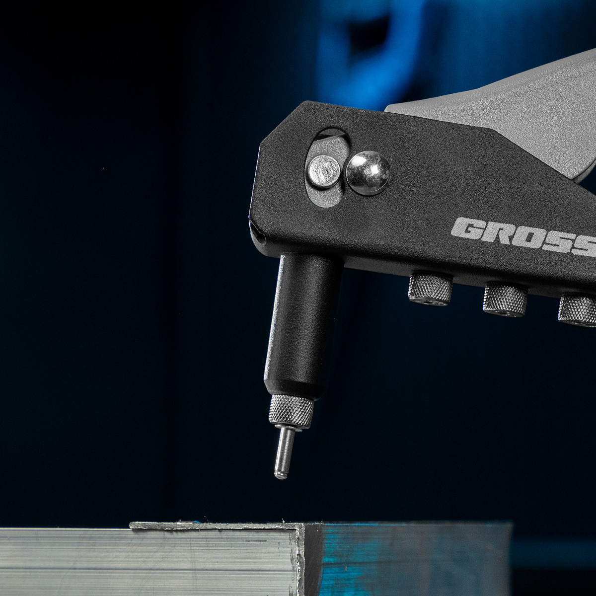 • Продуманная конструкция — сменные насадки устанавливаются в корпус заклепочника, поэтому они не потеряются.