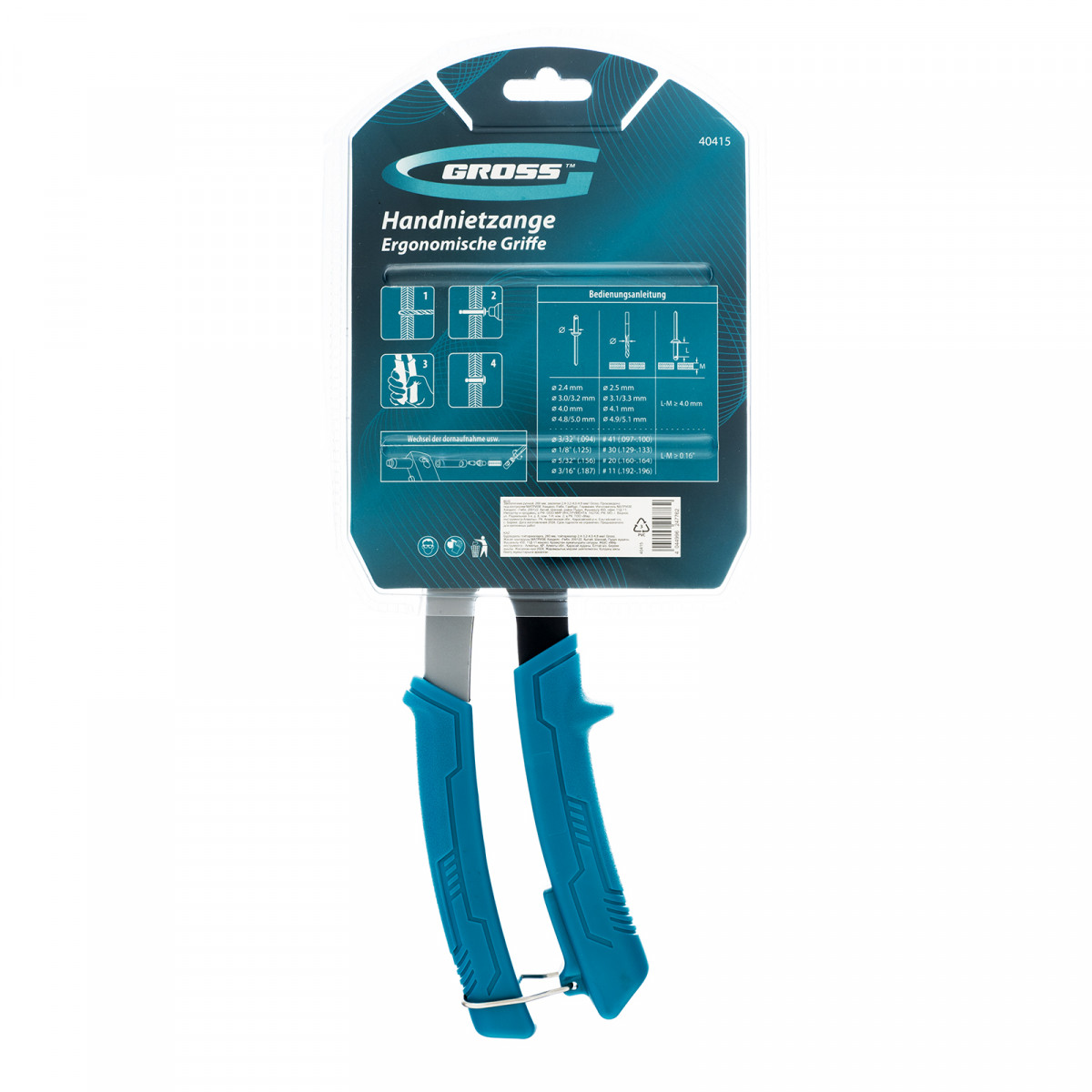 Заклепочник ручной, 260 мм, заклепки 2,4-3,2-4,0-4,8 мм Gross