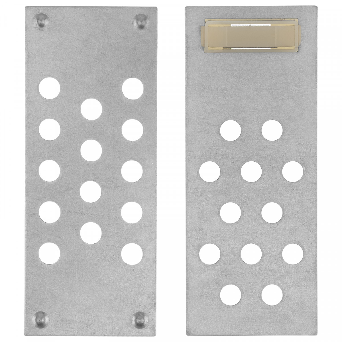 - Быстрый монтаж — в пластинах и ответных частях предусмотрено по 12 отверстий для крепления плитки (панели), вес изделий составляет 167 г.