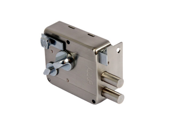 Замок накладной цилиндровый с вертушкой, фиксатором и защелкой. Предназначен для установки на деревянные двери. Засов из двух цилиндрических ригелей диаметром 12 мм, с максимальным вылетом 22 мм. Удаление ключевого отверстия - 50 мм. Габариты замка - 86х77х25 мм. Комплектация - 5 ключей, запорная планка, накладка. Механизм замка под англ.ключ, идет раздельно с корпусом.