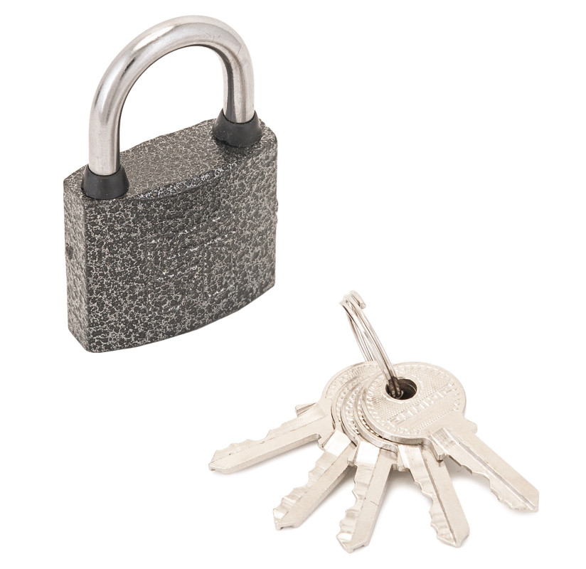 Модель защелкивается прижимом дужки. Резиновые прокладки предотвращают попадание внутрь влаги. Прочный металлический механизм открывается определенным ключом с уникальным кодом.