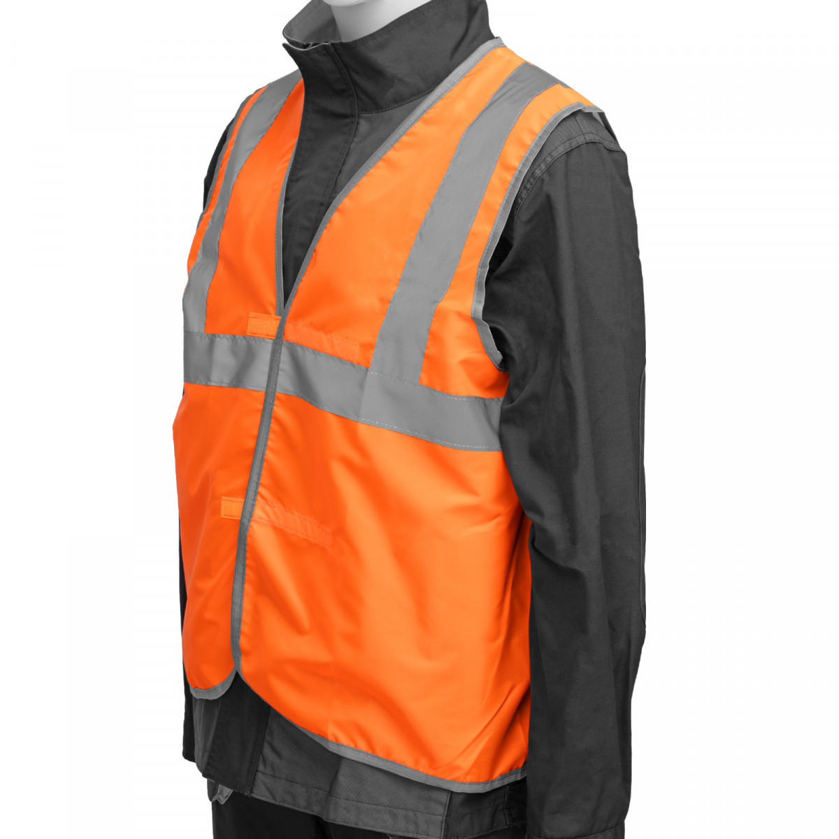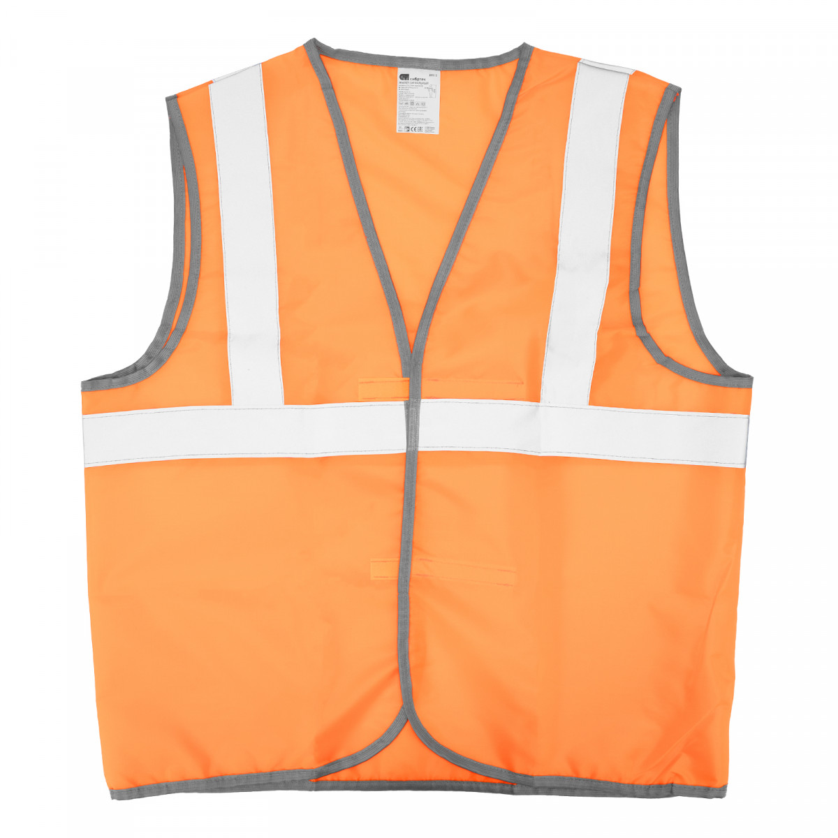 Оранжевый сигнальный жилет Сибртех 89513 размера XL (52-54) обеспечивает безопасность пользователя, а также защищает одежду от грязи. Его можно носить в любое время суток, т.к. яркий оранжевый цвет хорошо видно днем, а светоотражающие полосы — ночью и в условиях плохой видимости. Жилет подходит для эксплуатации в любую погоду и будет полезен строителю, охраннику, работнику коммунальных или дорожных служб.