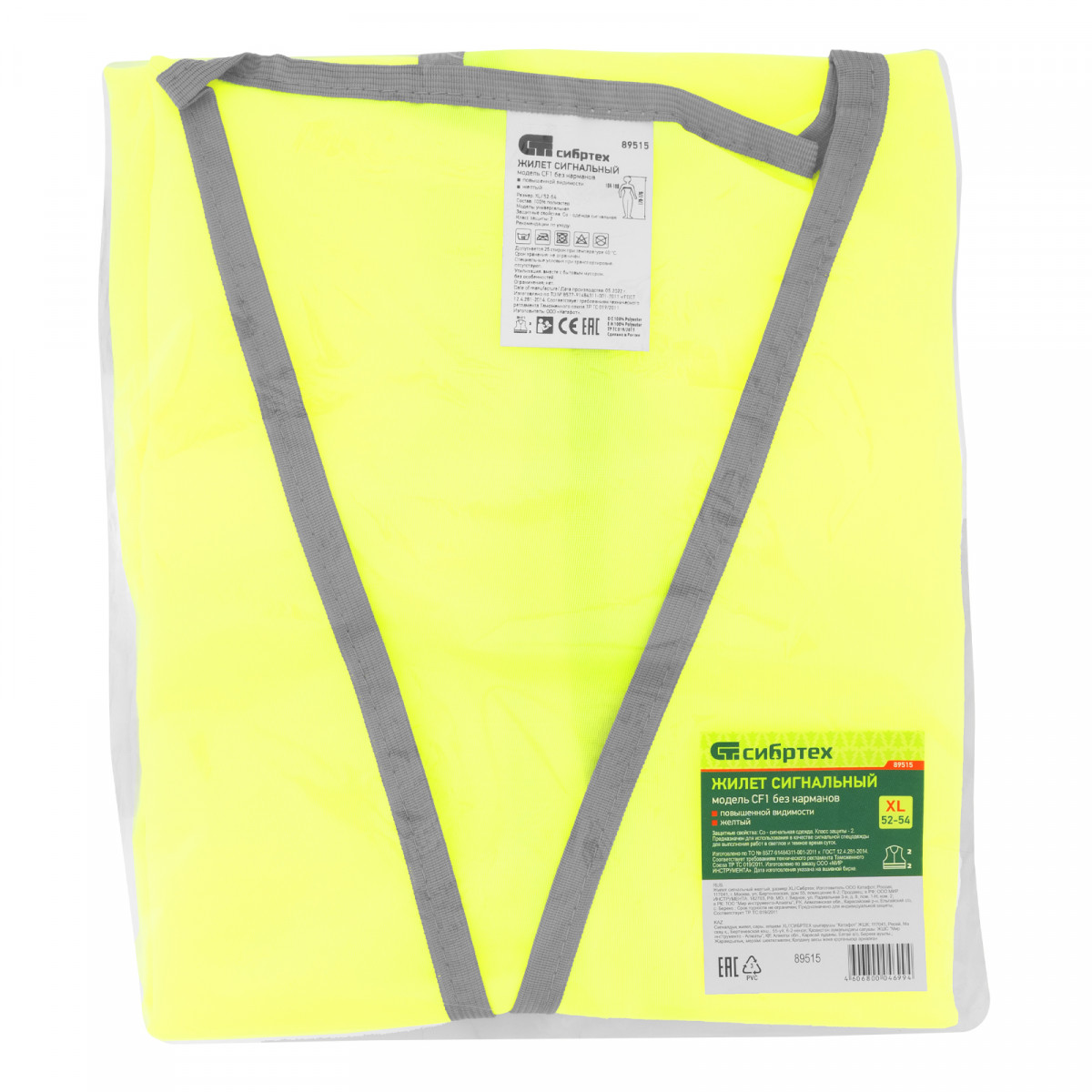 Желтый сигнальный жилет Сибртех 89515 размера XL (52-54) обеспечивает безопасность пользователя, а также защищает одежду от грязи. Его можно носить в любое время суток, т.к. яркий желтый цвет хорошо видно днем, а светоотражающие полосы — ночью и в условиях плохой видимости. Жилет подходит для эксплуатации в любую погоду и будет полезен строителю, охраннику, работнику коммунальных или дорожных служб.