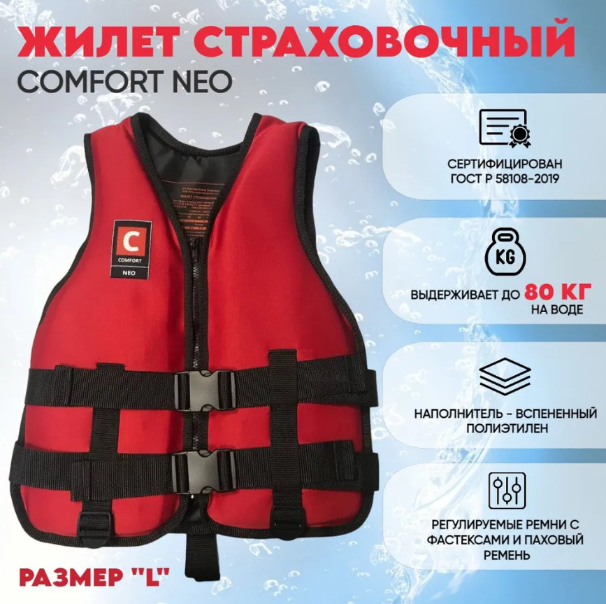 Страховочный жилет Comfort "NEO" изготавливается согласно ГОСТ Р 58108-2019. Эргономичная форма и легкий эластичный неопрен обеспечивают комфортную посадку без чувства стеснения в движениях. Материал: эластичный неопрен толщиной 2мм. Материал блоков плавучести: вспененный полиэтилен. Мягкий, эластичный и не впитывает воду! Сохранит плавучесть даже при длительном нахождении в воде.